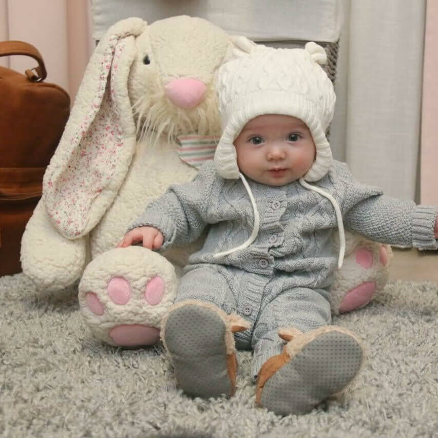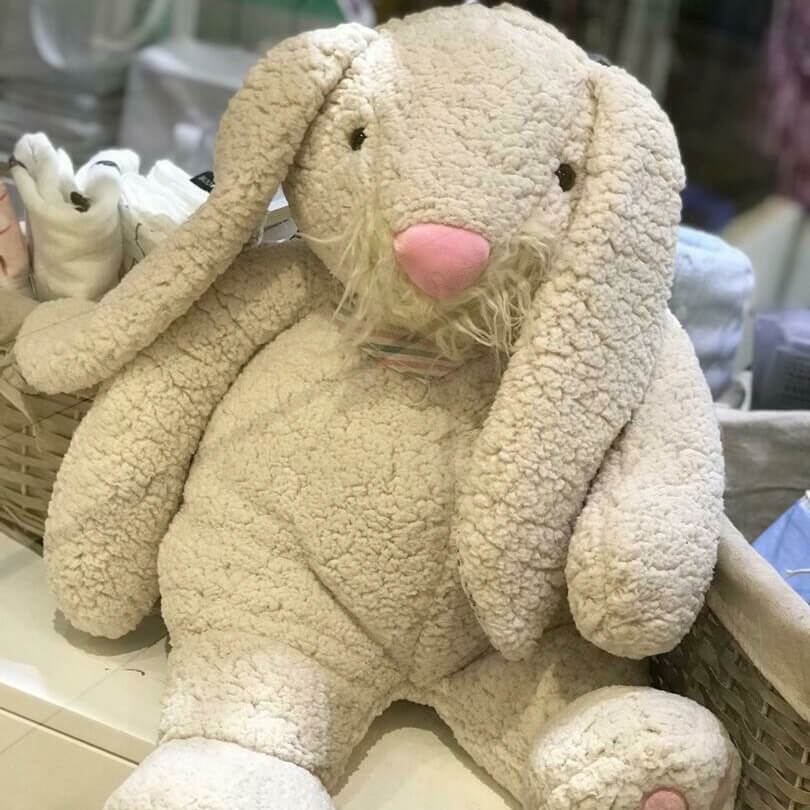Molly has the softest body with embroidered feet detail and an adorable plush bunny tail. Molly is like the old lady between the plushies. She is wise beyond her years, always offering warm, soft loving hugs. Just like granny did. She loves hugs. Molly would love her forever human to give her endless snuggles and love.